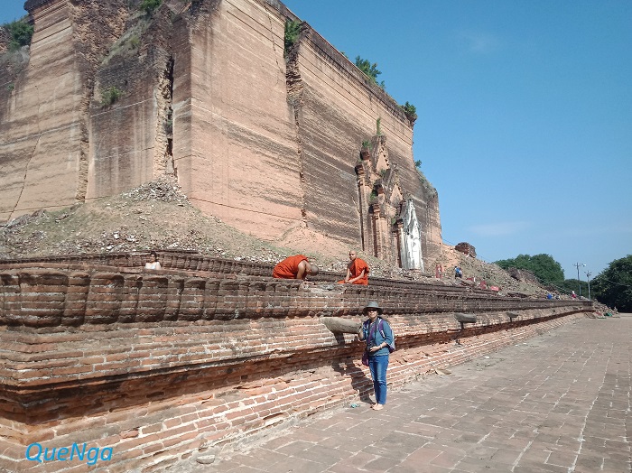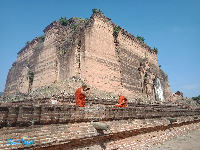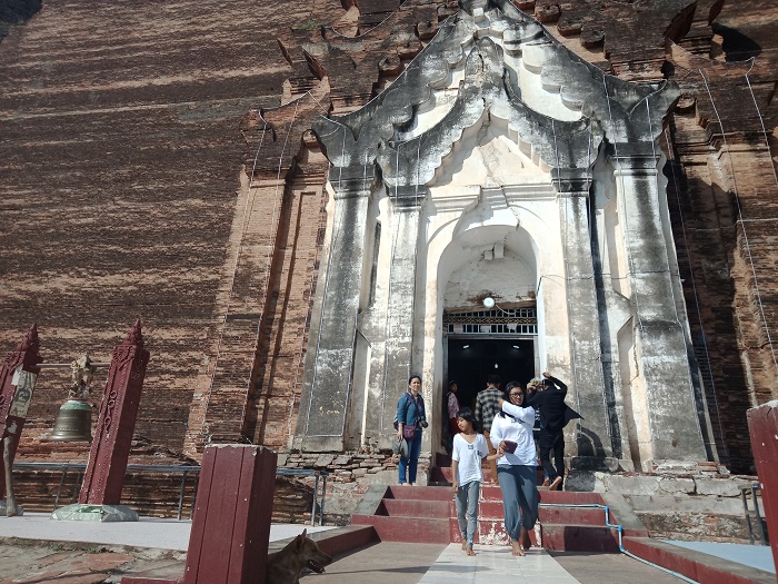 Người ta cho phép du khách leo lên lưng chừng tòa tháp cổ, từ đây có thể ngắm nhìn Mingun với những ngôi chùa tháp xung quanh.