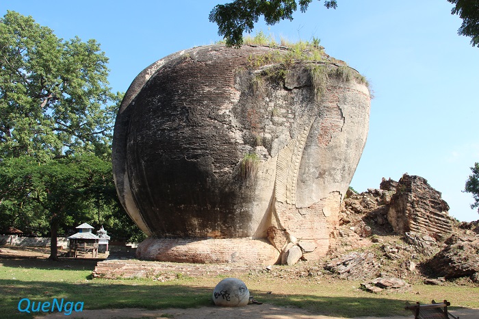 Phía trước chùa có tượng của hai con sư tử Chinthe khổng lồ cao khoảng 29 mét, canh giữ ngôi đền. Trận động đất đã khiến đầu của chúng rời khỏi cổ.
