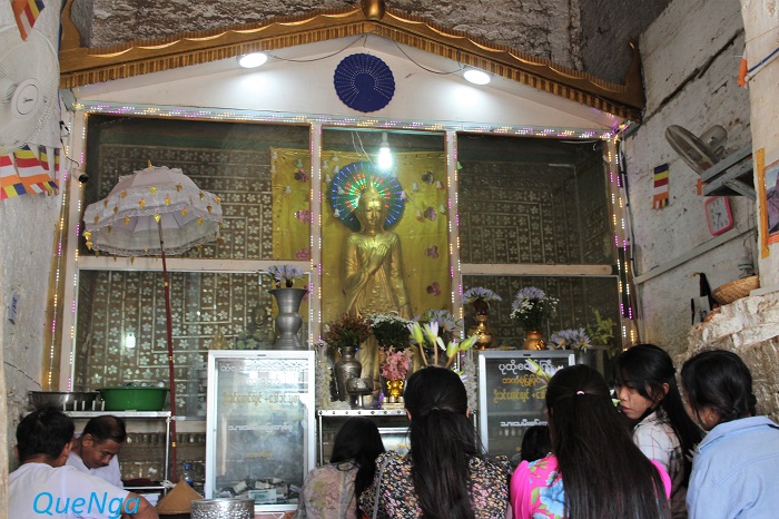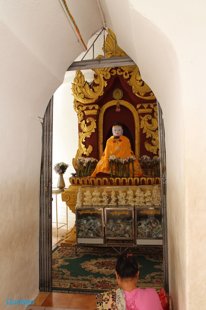 Bên trong khối gạch khổng lồ này chỉ có một gian điện rất nhỏ, với bức tượng Phật cũng nhỏ, thật khó tưởng tưởng nổi là đó lại là gian điện thờ của một bảo tháp như thế này.