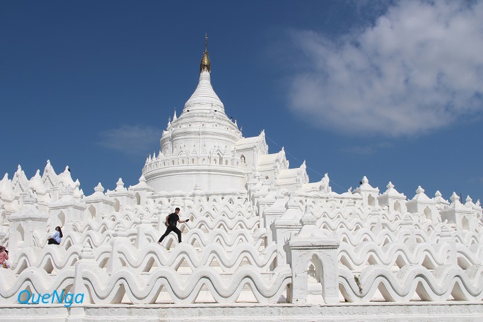 Chùa Trắng Hsinbyume là một điểm tham quan đặc biệt với tôi, vì lần đầu tiên tôi thấy du khách treo lên trên các tầng tháp để chụp ảnh một cách rất tùy tiện (và tôi cũng có một vài tấm!)