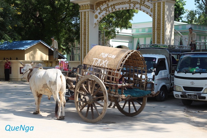 Mingun là một ngôi làng nhỏ, vì vậy cách tốt nhất là đi bộ thăm làng và đó là lựa chọn của phần lớn du khách. Tuy nhiên, nếu mỏi chân, bạn có thể sử dụng taxi đặc dụng của Mingun – một chiếc xe bò kéo rất ấn tượng!